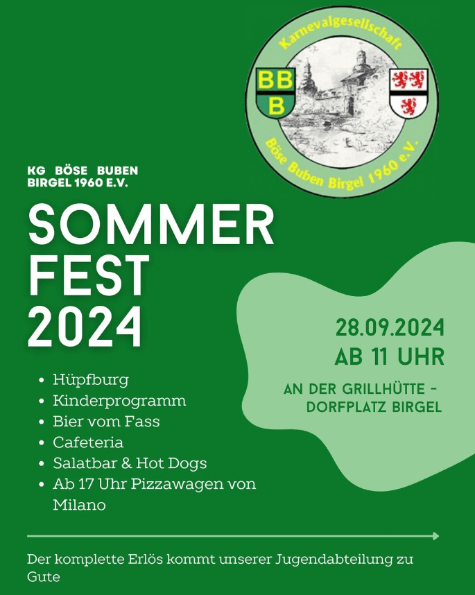 Dieses Jahr wird unser Sommerfest im Zeichen der Jugend stehen. Mit einer stetig wachsenden Jugendabteilung für unser kleines aber feines Birgel, wollen wir mit dem Erlös die Jugend fördern.